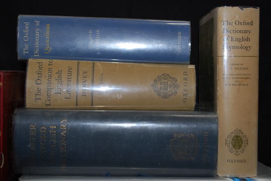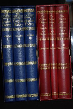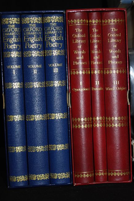 The Oxford Library Of English Poetry volumes 1-3 complete and boxed, The Oxford Library Of Words And Phrases volumes 1-3 complete and boxed. Plus at least 4 other Oxford English dictionaries including literature and quotations.