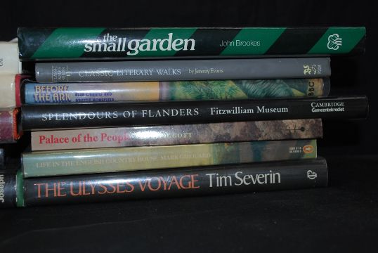 Various including The World Encyclopedia Of Dogs, The Magnificent Continent, The Jason Voyage and The Ulysses Voyage by Tim Severin, 12 books in all mostly hardback.