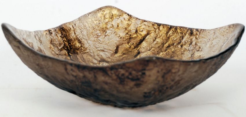 An unusual 20th century studio glass dish, in a gilt brown colouring.