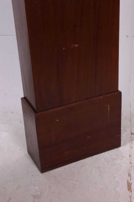 A 1930's mahogany upright pedestal plinth / clock plinth or bust plinth of square form with shaped rectangular top. Together with a Westminster chiming clock