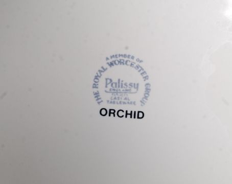 A retro 20th century Pallissy part dinner service in the orchid pattern comprising dinner plates, tureen etc