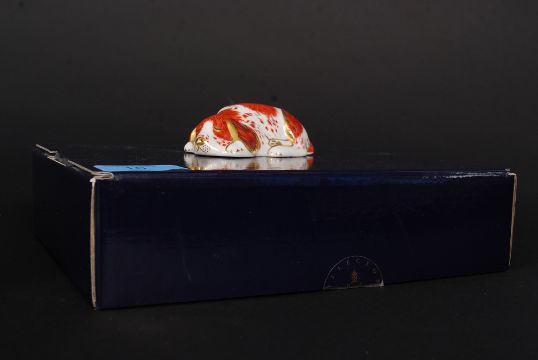 A Royal Crown Derby limited edition animal paperweight figurine - Puppy being an exclusive piece issued only to the Royal Crown Derby Collectors Guild. Complete with the gold stopper and with the box.
