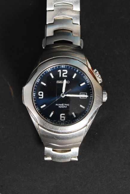 A Gents Seiko Kinetic stainless steel watch with blue dial. Working.