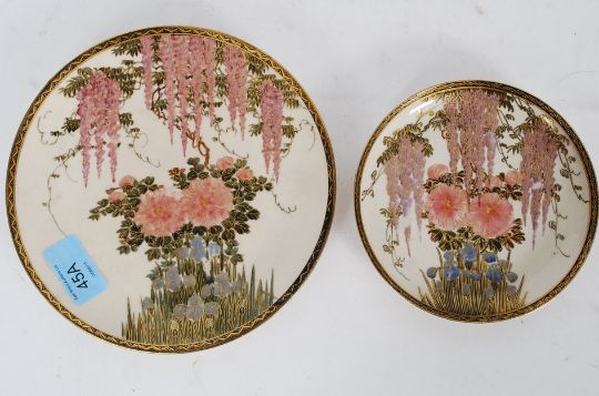 A pair of Japanese Satsuma plates having a Wysteria design marked to the base for William Fae Tor Rod, Kobe.
