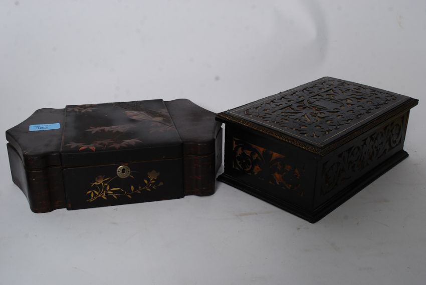 A decorative fret pierced jewellery box together with a Japanese chinoserie decorated trinket / jewellery box