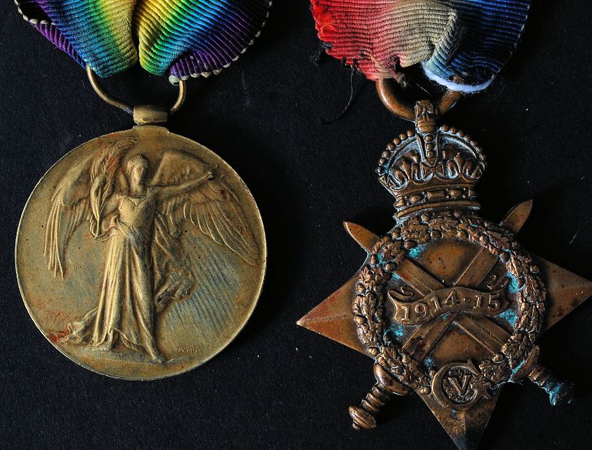 WWI First World War medal group - 1914 - 15 Star and Victory Medal, awarded to; 3222 Pte J Wiggins K.R. RIF. C. Both with original ribbons.