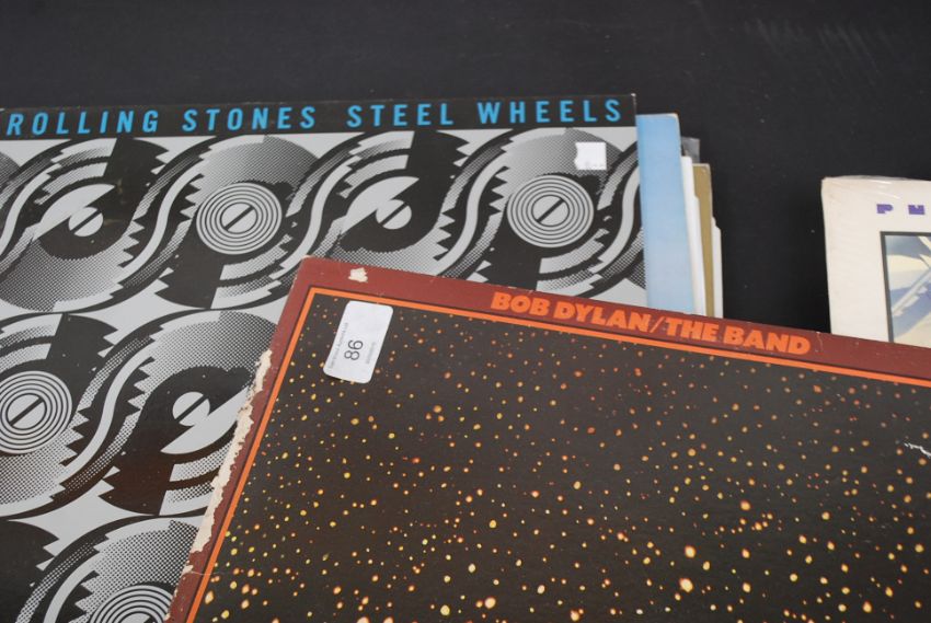 Group of vinyl records to include :Bob Dylan - The Band, Pinski Zoo - East Rail East, Rolling Stones - Steel Wheels, David Bowie - Pinups, Radio Birdman - Radios Appear, Stranglers - Rattus Norvegious plus much more.
