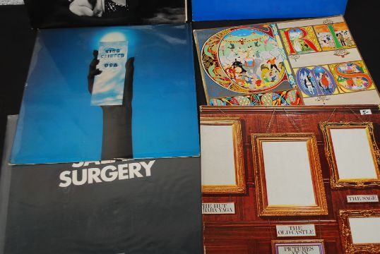 Group of vinyl records : Family Entertainment - Family, Emerson,Lake and Palmer - Pictures At An Exhibition, Emerson,Lake and Palmer - Brain Salad Surgery, King Crimson - Lizard, King Crimson - Beat, King Crimson - USA