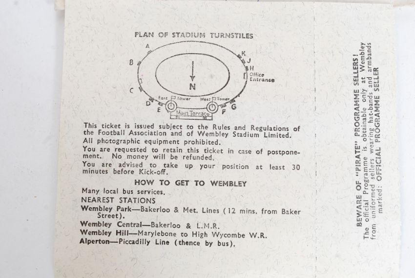 A 1966 WORLD CUP eight final ticket fort the match played at Wembley on Tuesday July 19. Complete with sleeve.