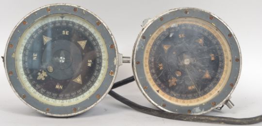 2 vintage 20th century Military ? Naval compass having covered dial in military grey
