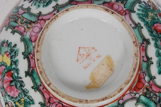 A collection of Chinese bowls each in a different design with character marks to base