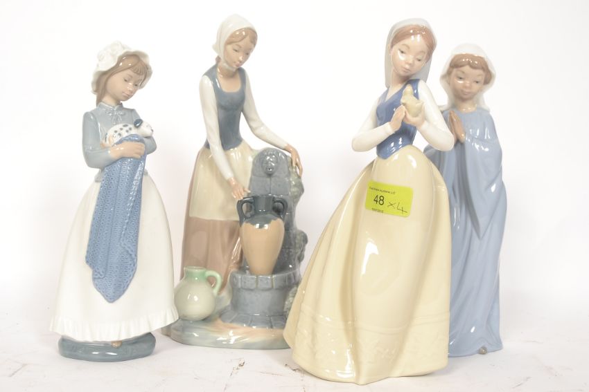 NAO LLADRO; A collection of 4x larger Nao Lladro figurines of girls