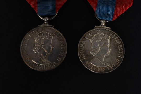 An Elizabeth Imperial Service Medal / Faithful Service Medal issued to Frank Ernest Warren complete with the black leather case. Together with another issued to William Charles Hodges - Uncased.