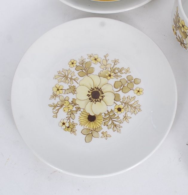 A retro six piece coffee service by Debutante, consisting of cups, saucers, sugar bowl and creamer
