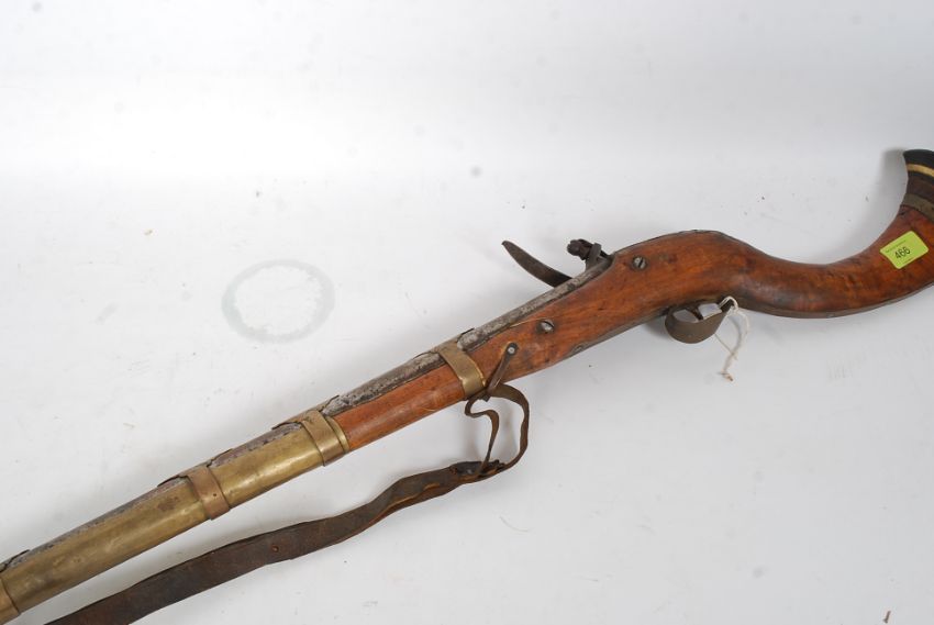 A 20th century large Jezail rifle of decorative form having brass mounts etc