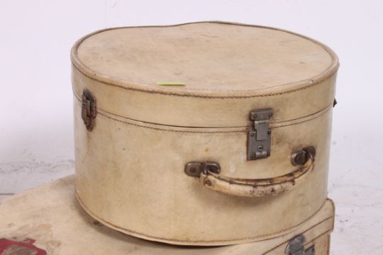 A good 1950's laquered travel suitcase and matching ladies vanity case having Cunard shipping labels.