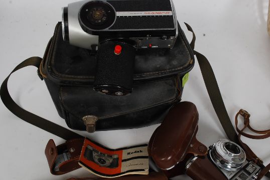 A collection of vintage camera equipment to include Kodak Pronto LK 35mm Cine Emig Super * etc