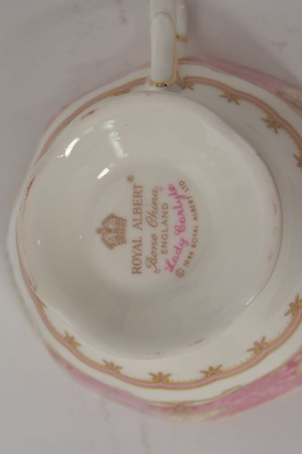 A large quantity of Royal Albert Lady Carlisle pink floral patterned dinner service pieces - to include teapot, cake stand and other pieces.