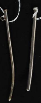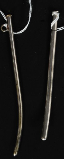 2 silver mid 20th century catheters having shaped ends being pierced. Unmarked, tests as silver