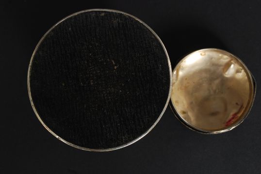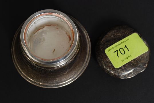 A hallmarked silver lidded inkwell pot, with hallmarks to lid.