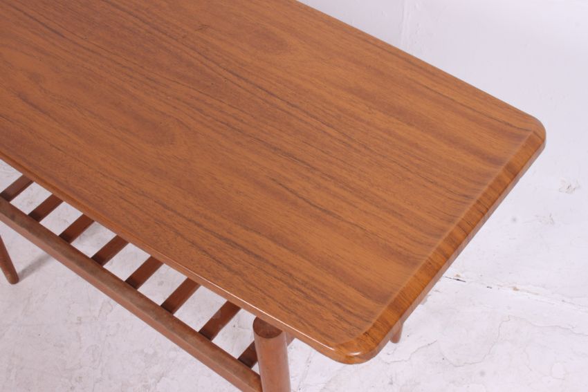 An unusual 1960's Formwood Furniture Co Special Needs adapted faux wood formica coffee table having unusual raised table top. Measures: 56cm nx 92cm x 41cm.