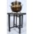 An unusual shaped brass coal purdonium together with a brass and oak folding merchants table