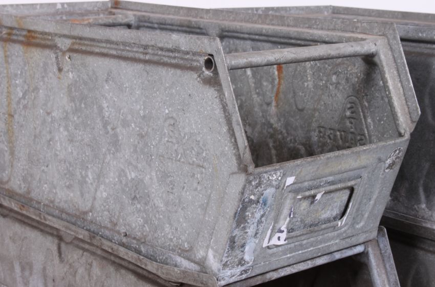 A collection of 10 Industrial 20th century vintage - retro galvanised metal tote trays ( see illustration )