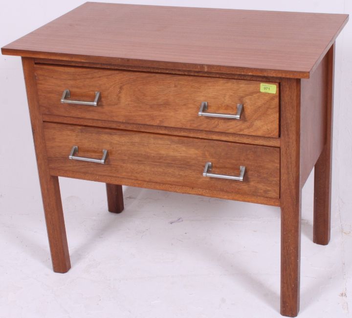 A 1930's solid oak art deco raised chest of drawers having flared top, twin drawers over squared legs H=70 W=81 by D=48
