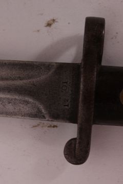 An Edwardian 1907 pattern WWI First World War bayonet, within original sheath. It has a 8 cm width.