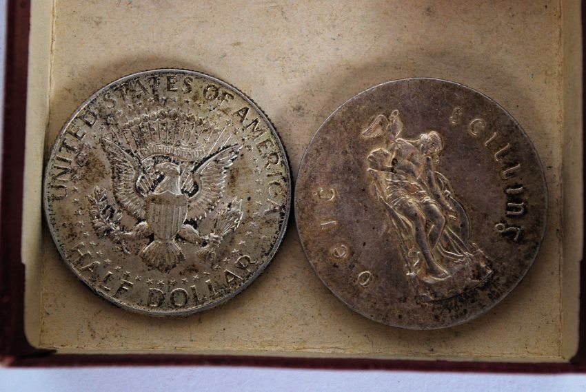 1964 silver half dollar together with a Pearse Silver Ten Shillings (Easter 1916) Commemorative 1966.