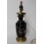 A 20th century black ceramic and brass oil lamp converted to an electric table / hall light.