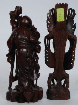 A well carved Chinese figure of the Chinese immortal Shou Lao along with another carving possibly Polynesian