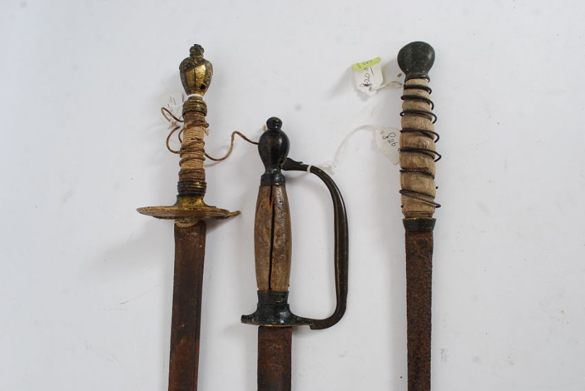 A collection of three Antique swords, at least one possibly Georgian all A/F please see images