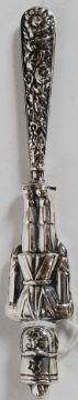 A Victorian style novelty babies rattle, stamped 925 to indicate silver, in the form of a nutcracker toy soldier.