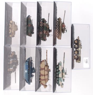 TANKS; A collection of 9x precision diecast model army military tanks, each within their original plastic display cases.