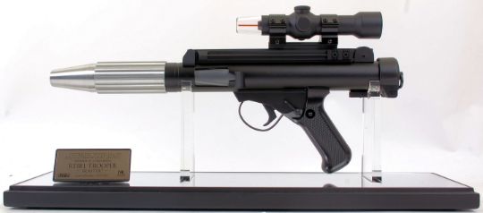 MASTER REPLICAS STAR WARS; An original Master Replicas Episode IV A New Hope ' Rebel Trooper Blaster ' limited edition prop replica gun. 1263 / 2500. Note; from an impressive private collection of Master Replica Star Wars props / helmets / lightsabers. Each (unless stated) is 'as new' and comes complete with all interior packaging, certificates, accessories and original presentation cases, cardboard boxes and shipping boxes. All are limited edition.