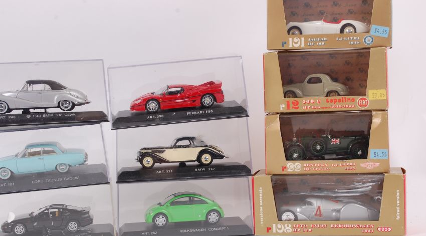 BRUMM; A collection of mixed boxed diecast to include 4x Brumm boxed models, and 8x (likely Brumm but unmarked) precision detail diecast model cars. Each within their original display cases.