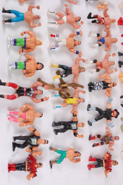 HASBRO WRESTLING; A collection of 31x original Hasbro Wrestling action figures, some with articulated or special features, along with 3x action figure wrestling belts.