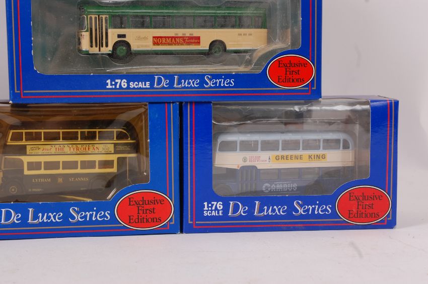 EFE; A collection of 6x Exclusive First Editions ( EFE ) diecast model blue box ' De Luxe ' series buses. Each within the original boxes.