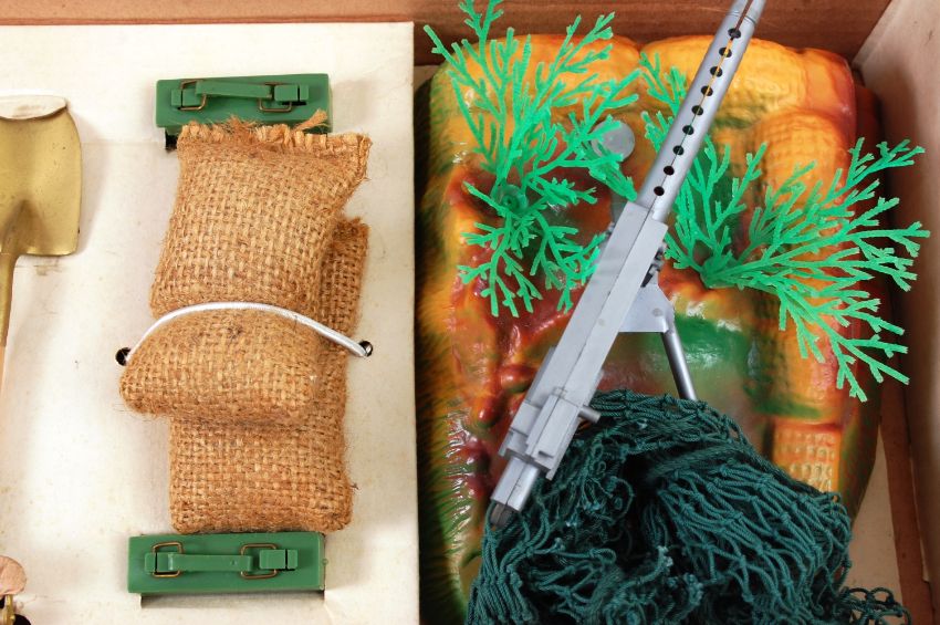ACTION MAN; An original vintage Palitoy Action Man ' Machine Gun ' set. Within the original box, the set appears to be unused. Appears to be complete, with the contents still strung to the interior packaging.