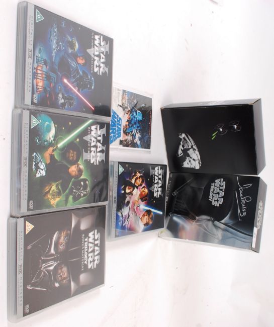 STAR WARS TRILOGY; Star Wars Trilogy DVD release boxset, signed with autograph by Dave Prowse ( Darth Vader in the original trilogy ). The set is complete including slipcase and inner sleeve. Bold silver autograph to the front. Obtained direct from HMV upon release of the boxed set.