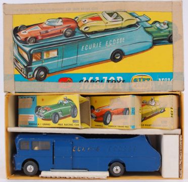 CORGI; An original vintage diecast model Corgi Major Gift Set No. 16 - Ecosse Racing Car Transporter. The original set comes with boxed cars; 152S, 150S and 151A. Complete with transporter and all three cars. Note; from a large private collection of original vintage Dinky / Corgi diecast cars. Most are in wonderful condition, within good boxes. Condition generally varies from good to excellent, but there are some more playworn. Some have never been removed from the box and as such are 'mint.' Although all are generally great, buyers are reminded to satisfy themselves as to condition prior to bidding