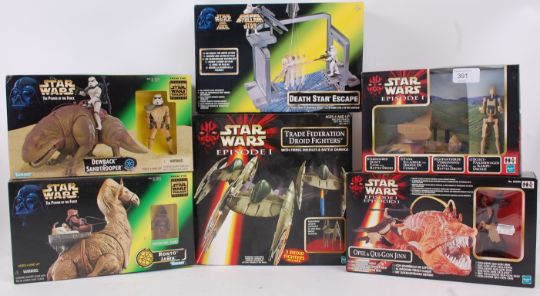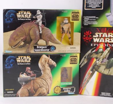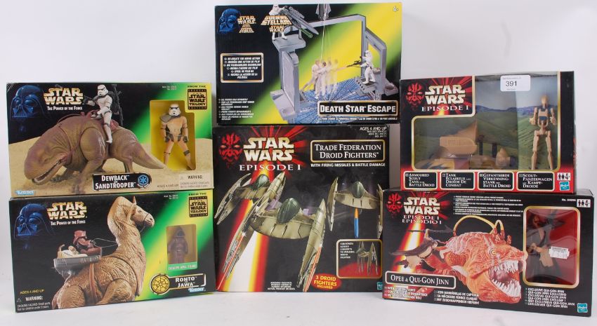 STAR WARS; A collection of 6x assorted boxed Star Wars playsets, comprising of; Ronto, Dewback, Death Star, Droid Fighters, Opee and Scout Tank. By Kenner or Hasbro. Each appears within the original box.