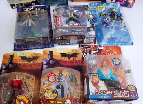 ACTION FIGURES; A good collection of carded / boxed action figures to include a Mattel 90210 doll, Jack Bauer ' 24 ' 12" doll, Angel, Buffy The Vampire Slayer, WWF and others. Each unopened.