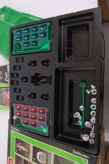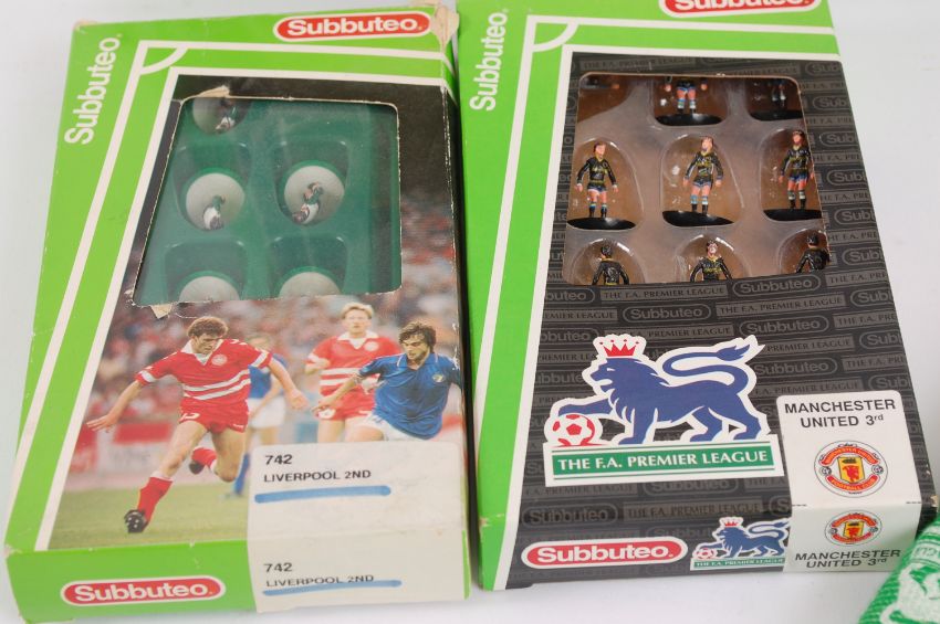 SUBBUTEO; An original Subbuteo football set, along with boxed teams - 742 & Manchester United 3rd set. Each within the original box. See illustrations.