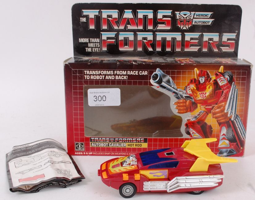 TRANSFORMERS; An original vintage retro G1 Transformers ' Hot Rod ' plastic toy, within original box, with instructions.