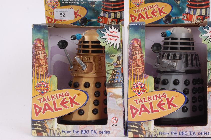DOCTOR WHO; A collection of 3x Product Enterprise battery operated reissue Daleks. Comprising of; silver & red, grey & black and gold & black. Each presented within their original boxes.