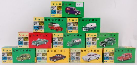 VANGUARDS; A collection of 10x Vanguards 1:43 scale boxed diecast models - each appearing to be unused within the original boxes. Land Rover, Mini, Austin, Triumph etc.