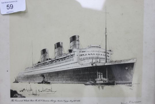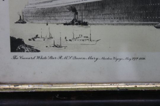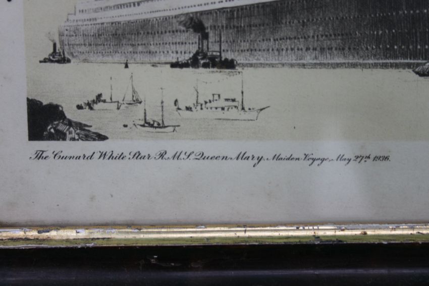 Print of the Queen Mary framed and glazed H17 W24cm Cost of postage and packaging is £15.99 plus VAT on a tracked and recorded service. Combined postage available. World Wide and European service please enquire by email.