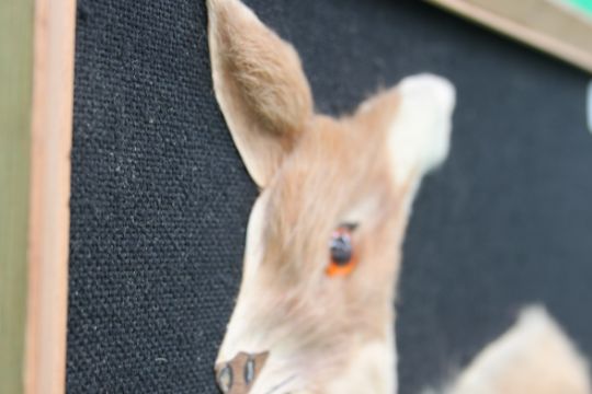 Deer with bead eye on canvas made from possibly real deer by R. Kay H48 W36cm Cost of postage and packaging is £15.99 plus VAT on a tracked and recorded service. Combined postage available. World Wide and European service please enquire by email.